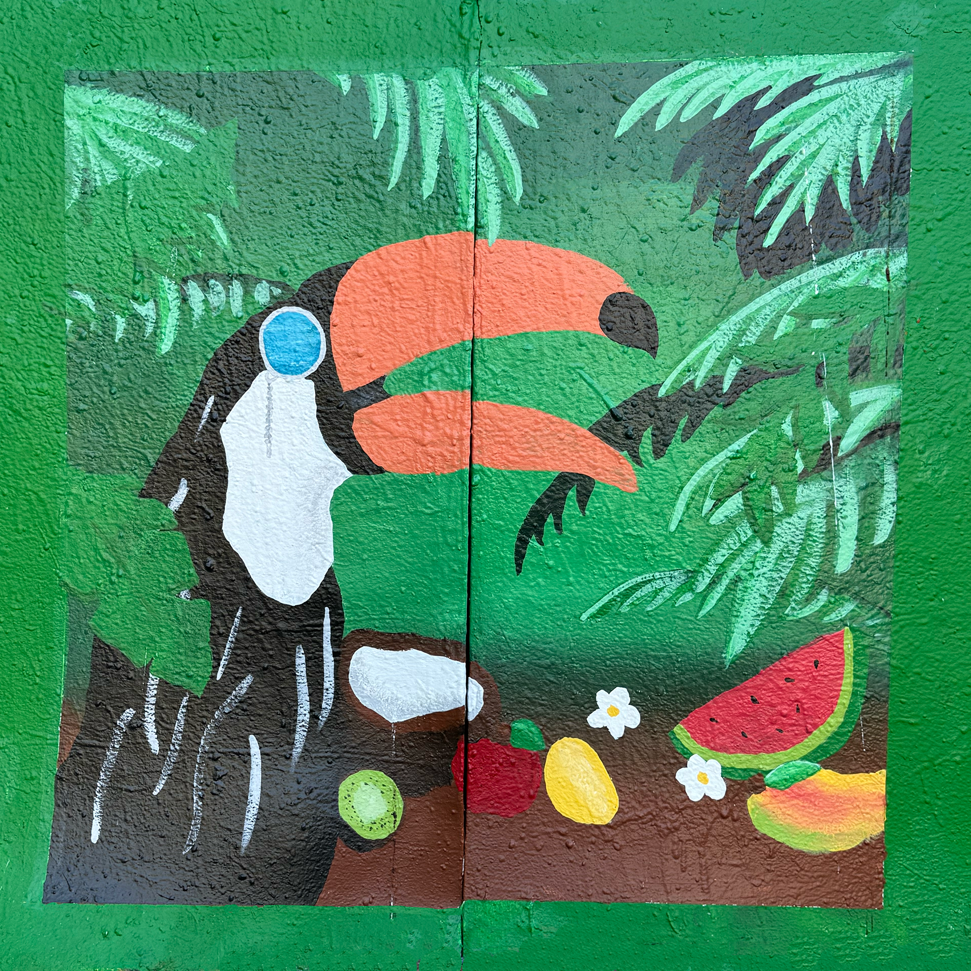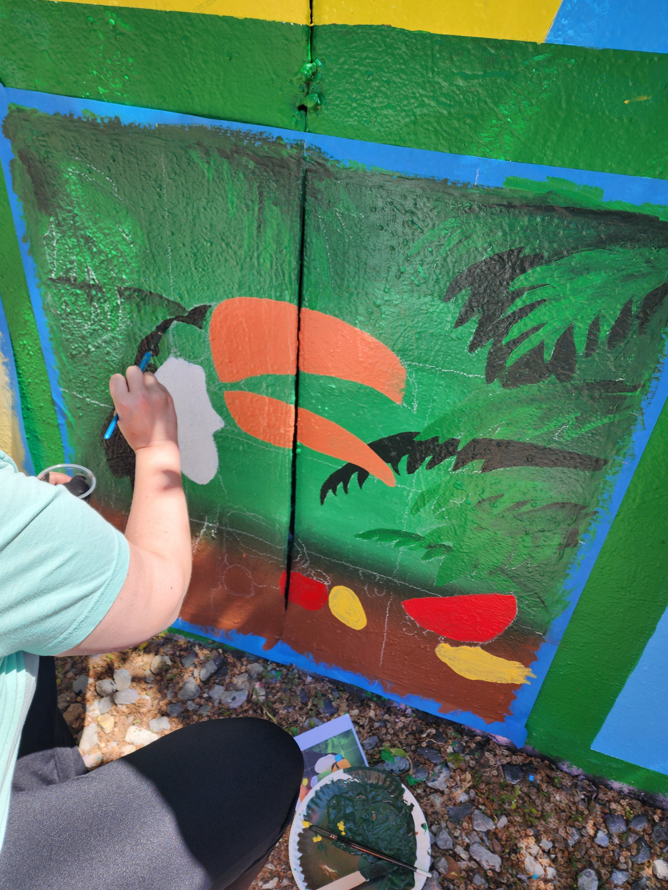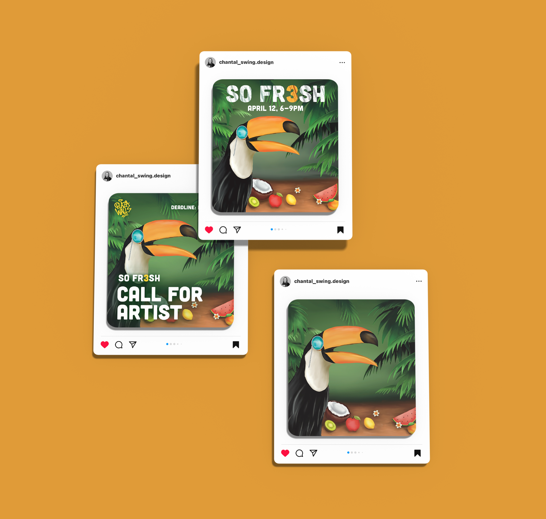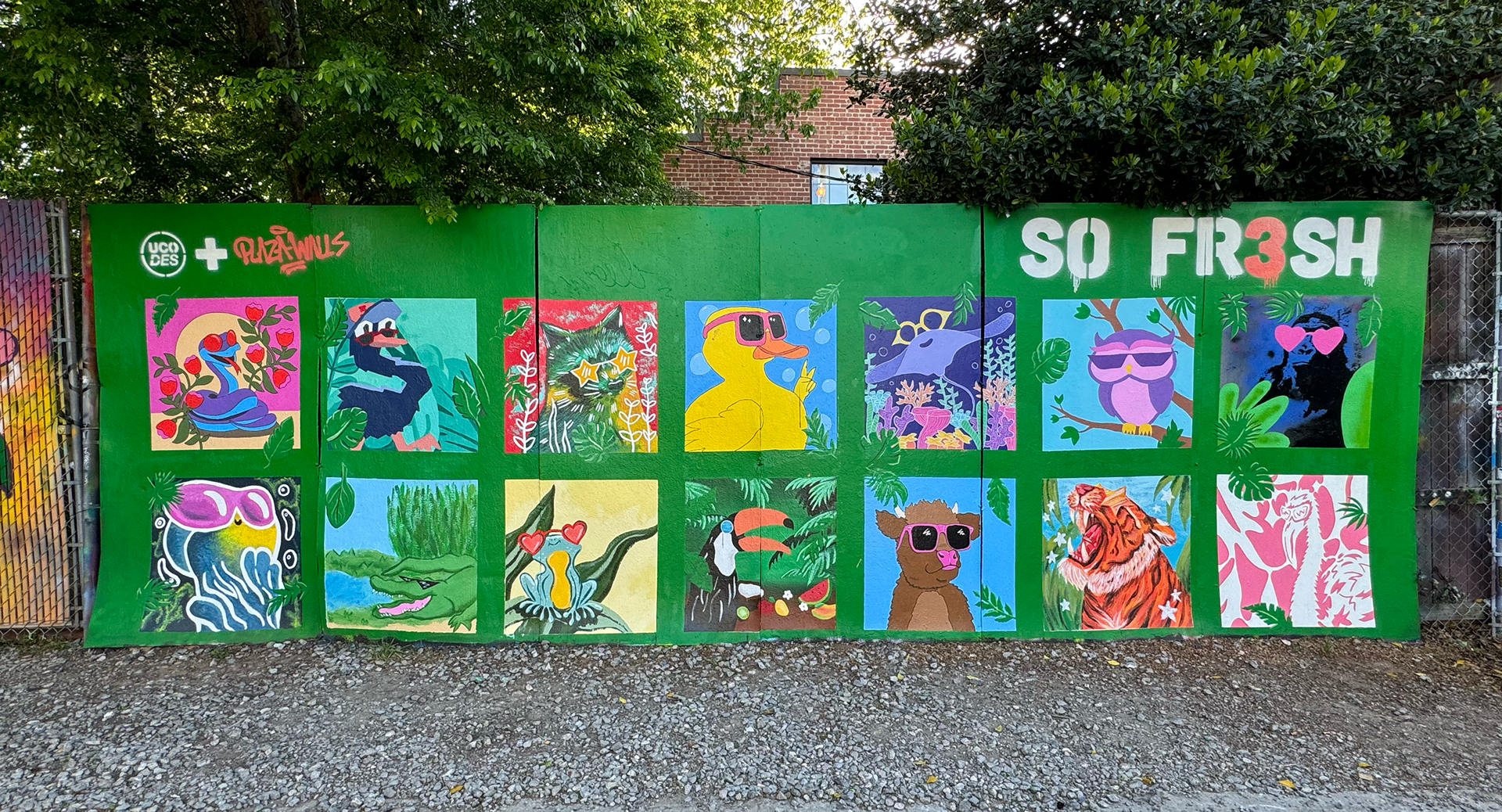 A collaborative endeavor involving the creation of artwork for both a mural and social media announcements. The concept revolved around animals wearing sunglasses amidst a natural backdrop. (Team Project)