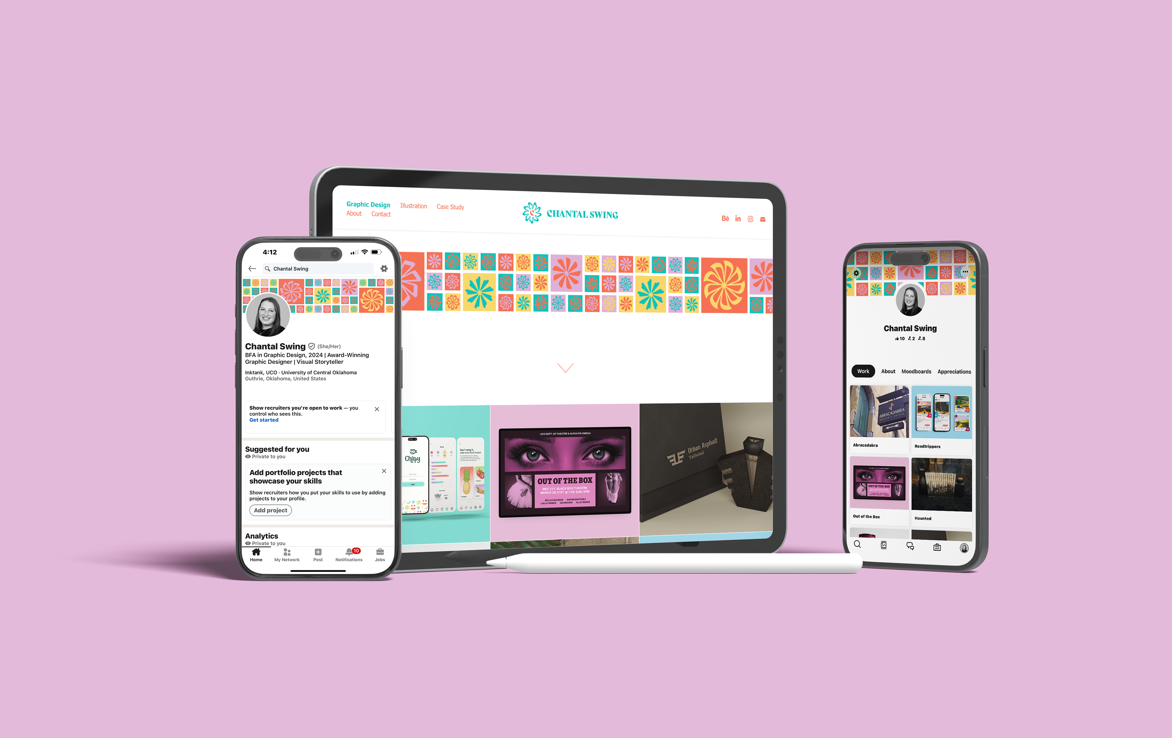 Personal brand packed with vibrant colors, and circles that encase blossoming flowers, in which all embodies controlled chaos and reflects the journey of perpetual growth.